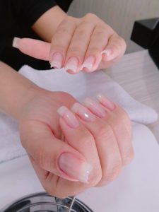 Utilizamos a técnica de COLORIMETRIA, para deixar as pontas das unhas mais claras com aspecto ainda mais natural realística. A unha de fibra silk é um tipo de alongamento feito a partir de fios de fibra fio à fio, fixadas na unha e moldados em cima da unha natural, seguindo seu formato – ou o formato que você desejar. Quem pode fazer o alongamento: essa técnica é perfeita para quem não consegue deixar as unhas crescerem, para mulheres que tem unhas naturais fracas e quebradiças.